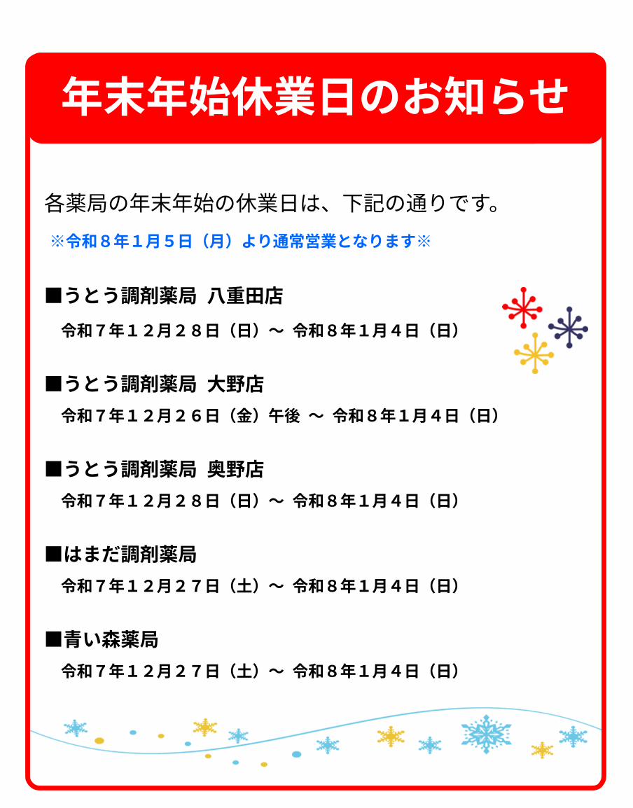 年末年始の休業日のお知らせ